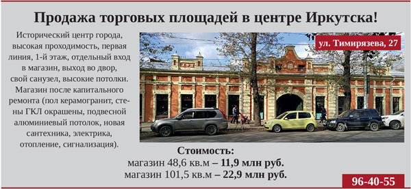Продажа торговых площадей в центре Иркутска! ул. Тимирязева, 27