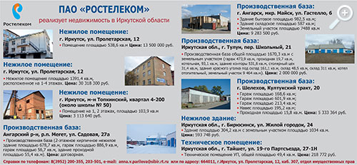 ПАО «Ростелеком» реализует недвижимость в Иркутской области