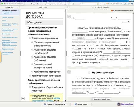 Онлайн-сервис «Конструктор договоров» дополнен новым видом договора – трудовым договором с руководителем организации. Теперь разобраться в особенностях составления такого договора будет гораздо проще.