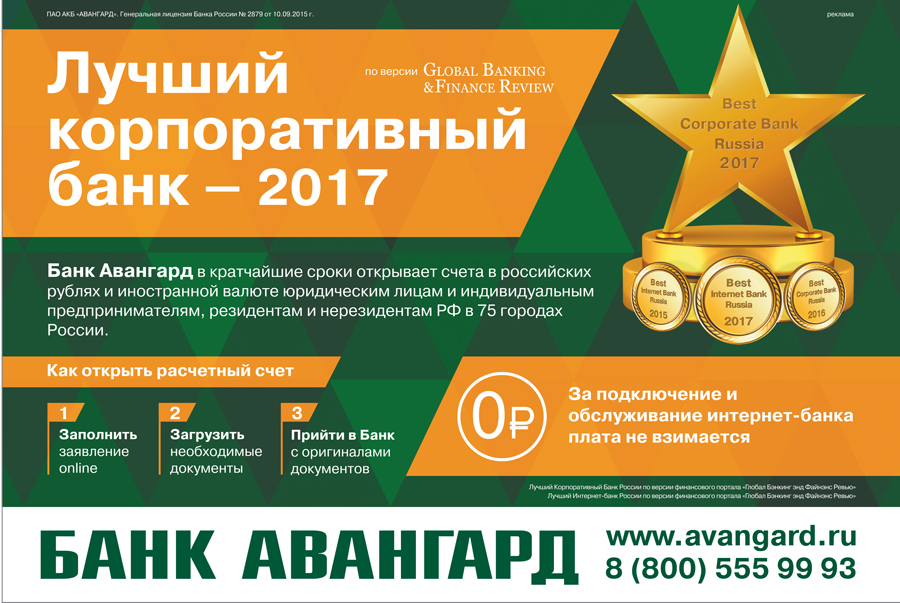 Банк «Авангард». Лучший корпоративный банк – 2017. По версии Global Banking &Finance Review