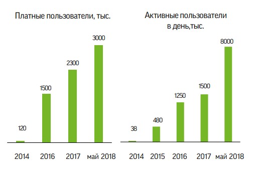 На сегодня в компании работает более 1500 человек, а ее доход в 2017 году составил 200 млн рублей. Slack фиксирует постоянный рост пользователей – с сентября 2015 по май 2018 их число увеличилось с в четыре раза (с 2 до 8 млн человек), одновременно с марта 2016 по май 2018 в три раза выросло и количество платных подписчиков, которое теперь находится на отметке 3 млн человек. Такие показатели предполагают, что сервис не только пользуется спросом, но и работает на перспективном направлении, где еще есть пространство для дальнейшего роста.