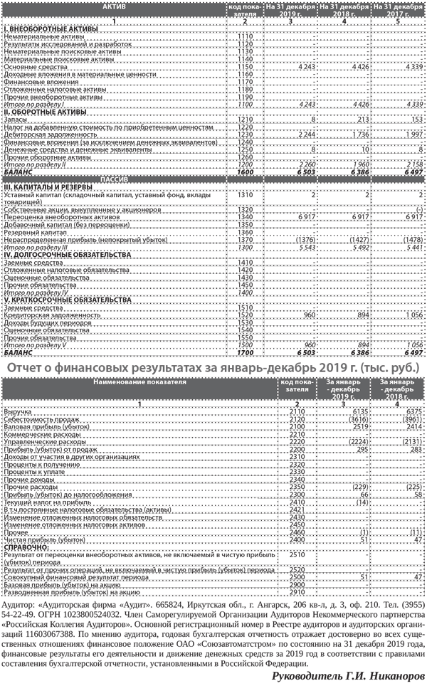 Союзавтоматстром опубликовал бухгалтерскую отчетность за 2019 год