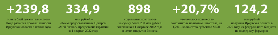 • Ставка 5,5% по программам льготного кредитования Фонда микрокредитования Иркутской области» до конца 2022 года. Размер займа на одного получателя увеличен до 10 млн рублей.