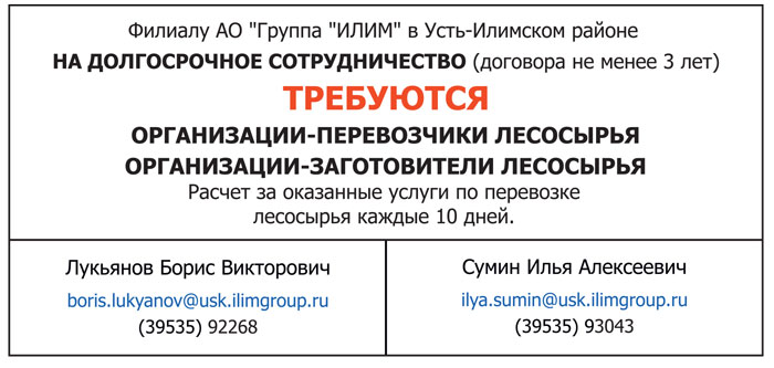 Филиалу АО "Группа "ИЛИМ" требуются