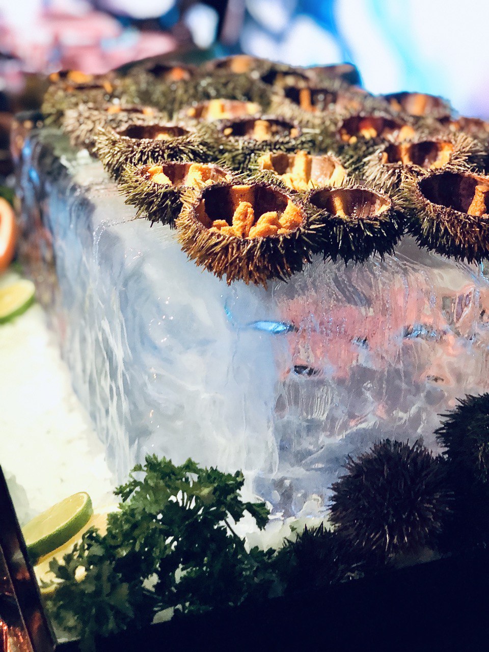 Устрицы, креветки, икра морского ежа, гребешок, мидии, свежая рыба и другие морепродукты подаются порционно. Шеф-повар учит гостей устричному этикету, способам открытия устриц: у каждого есть возможность самостоятельно, но под руководством шефа, открыть устрицу и съесть ее с подходящим изысканным соусом.