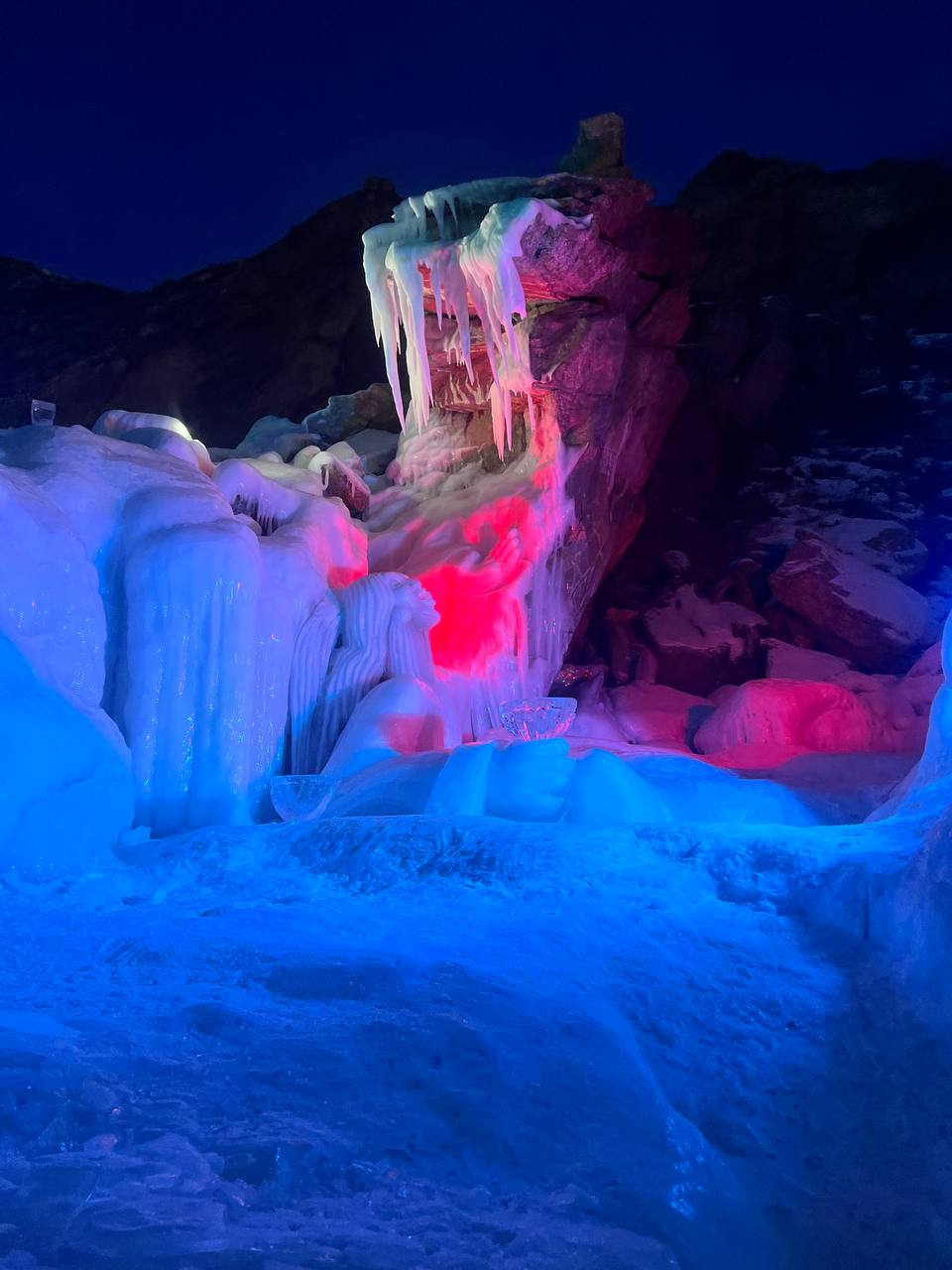 Ледяными барельефами и фигурами можно любоваться в течение всего дня, потому что они всё время выглядят по-разному из-за меняющегося солнечного освещения. А в тёмное время суток парк завораживает ещё больше, чем днём. Продуманная разноцветная подсветка делает его по-настоящему футуристичным и сказочным.