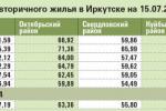 Средняя стоимость вторичного жилья в Иркутске на 15.07.2014г. (тыс.руб/кв.м) по данным REALTY.IRK.RU [18.07.2014]