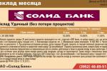 Вклад месяца от Солид Банка: вклад "Удачный", без потери процентов [19.09.2014]