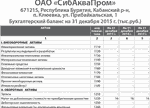 ОАО «СибАкваПром». Бухгалтерский баланс на 31 декабря 2015 г. (тыс.руб.) [15.07.2016]