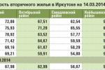 Средняя стоимость вторичного жилья в Иркутске на 14.03.2014г. (тыс. руб/кв.м) по данным REALTY.IRK.RU [21.03.2014]