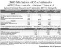 ЗАО Магазин «Юбилейный». Бухгалтерский баланс на 31 декабря 2014 г. (тыс.руб.) [26.06.2015]