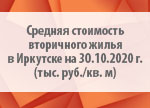 Средняя стоимость вторичного жилья в Иркутске на 30.10.2020 г. (тыс. руб./кв. м) [06.11.2020]