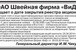 ОАО Швейная фирма «ВиД» сообщает о дате закрытия реестра акционеров [18.04.2014]