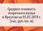 Средняя стоимость вторичного жилья в Иркутске на 05.07.2019 г. (тыс. руб./кв. м) [12.07.2019]