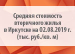 Средняя стоимость вторичного жилья в Иркутске на 02.08.2019 г. (тыс. руб./кв. м) [09.08.2019]