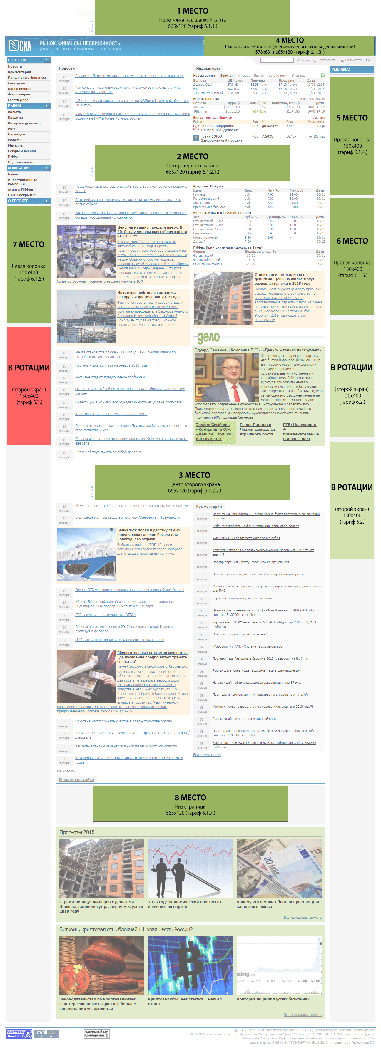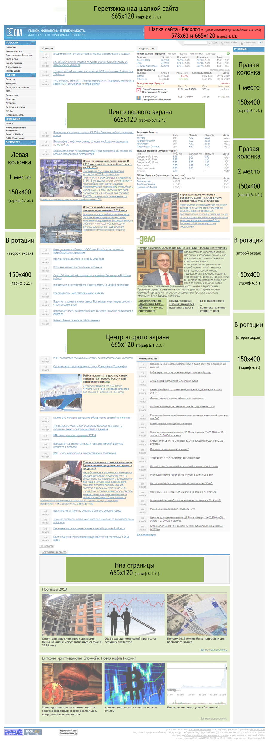 Размещение на SIA.RU баннера в ротации, который является единым HTML-блоком и содержит следующие элементы: название Компании, краткое описание рекламируемой услуги, выделенный текст (например, номера телефонов), изображение размером 150*400 пикс (возможно flash). При каждом открытии страницы SIA.RU баннеры в ротации меняются местами. Весь баннер в ротации является ссылкой на собственный сайт Компании, либо на промо-страницу на SIA.RU или информацию о рекламируемых услугах, размещенную в разделе «Рынки».